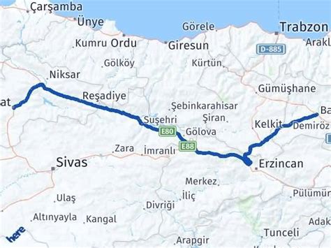 tokat bayburt arası kaç saat